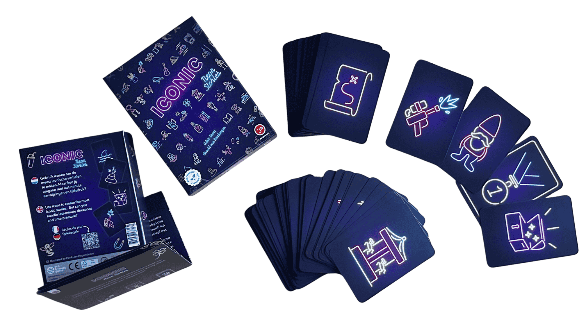 Iconic Neon Stories is a fast, simple, and visually innovative party game by Adrie Drert and Arnold van Birsberger, published by Jolly Dutch, and illustrated by Henk-Jan Hogendoorn. The deck is full of glowing neon icons that are meant to inspire rather than define, so every round feels like a new burst of creativity. It’s perfect for game nights with friends: it doesn’t get repetitive, it keeps the energy up, and it’s absolutely hilarious when everyone starts telling wild stories.